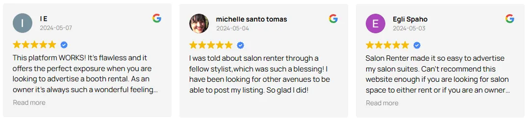 We work with suites, booths, hybrid salons, studios—you name it. If it’s a legit rental space for beauty professionals, we’ll find it.
